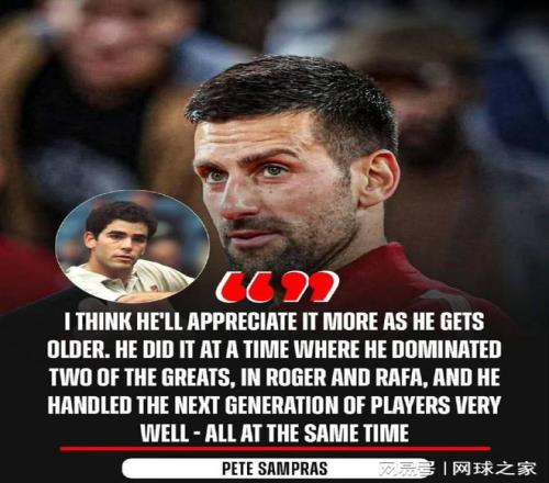 作为上一代的球王,桑普拉斯公开称赞德约科维奇“配得上史上最伟大选手”称号,其赞美不仅只是针对德约科维奇24个大满贯冠军的认可,更是对他在不同时代保持统治力的全面肯定。