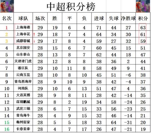 积分榜方面,上海双雄昨晚都赢了球,这样的话惨遭逆转绝杀的成都蓉城近5轮只赢一场的情况下落后榜首的上海海港4分,尽管他们赛季双杀上海海港,但只剩1轮,落后4分的他们也是提前无缘争冠,同时还被申花超过,跌到了第3。最后还是和上赛季一样,上海双雄争冠,申花上轮没有把握住机会追上来,这样的话上海海港对申花1胜1平相互战绩占优,最后一轮上港只需客场打平大连英博就能夺得中超3连冠,申花可能还是因为自己掉链子而无法终止上港的连冠。